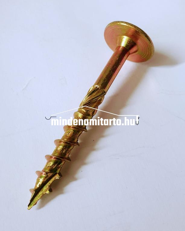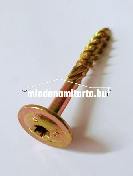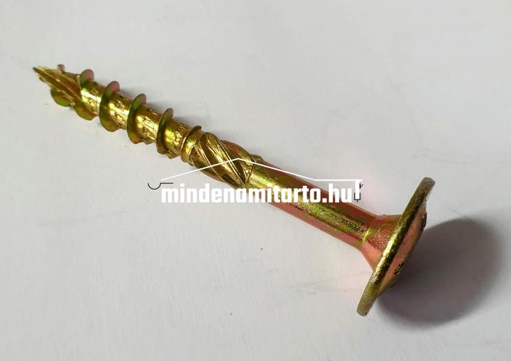 Ácsszerkezeti csavar , lapos peremes fejjel, d 8x50, sárga, fába való rögzítéshez , oszloptartónál.