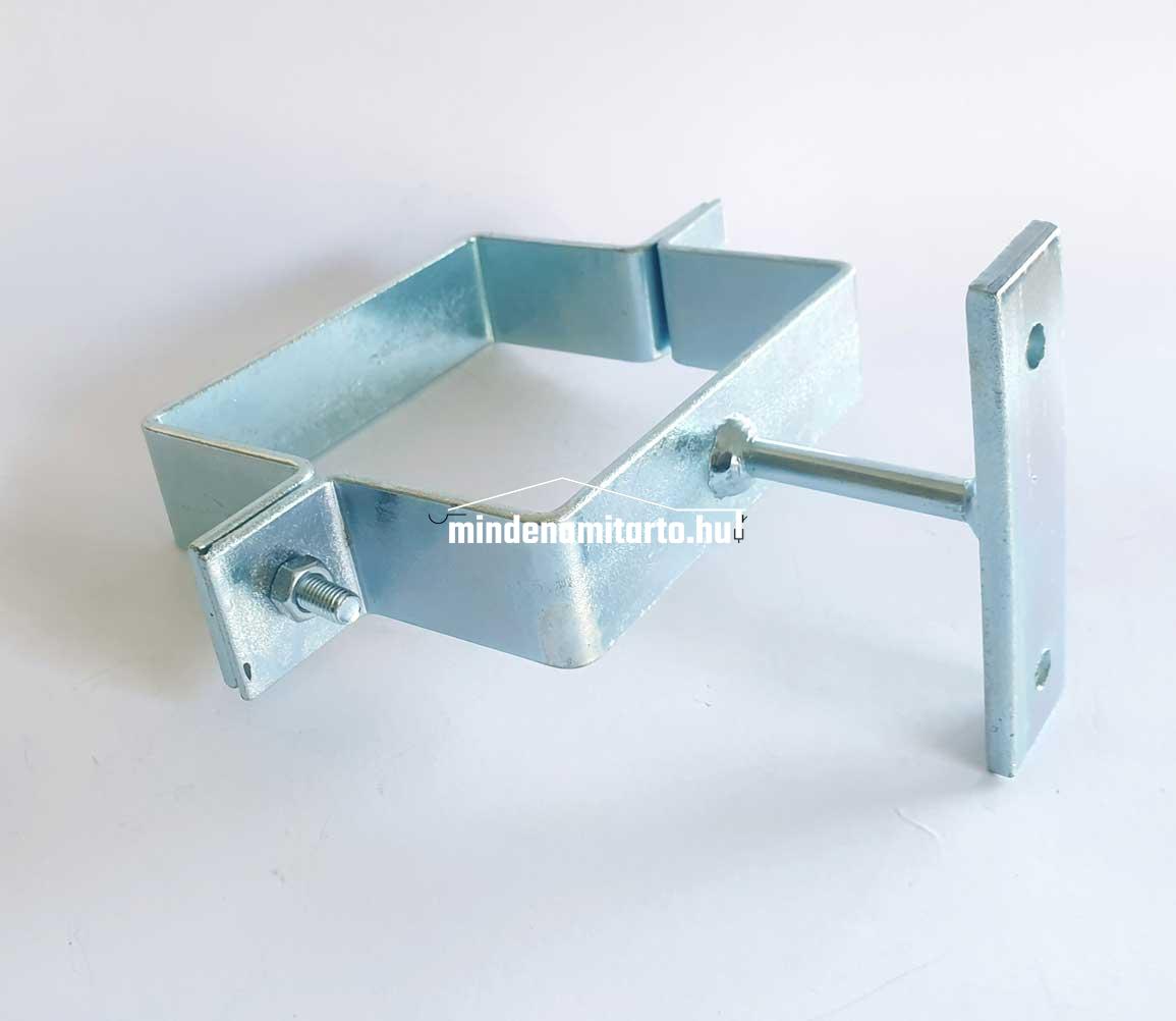 Szögletes bilincs 100-s , talpas.  Mérete: 100x100-s , 30x3 lapos acélból , 50 mm hosszú talpas kivitelben, horganyzott acélból.