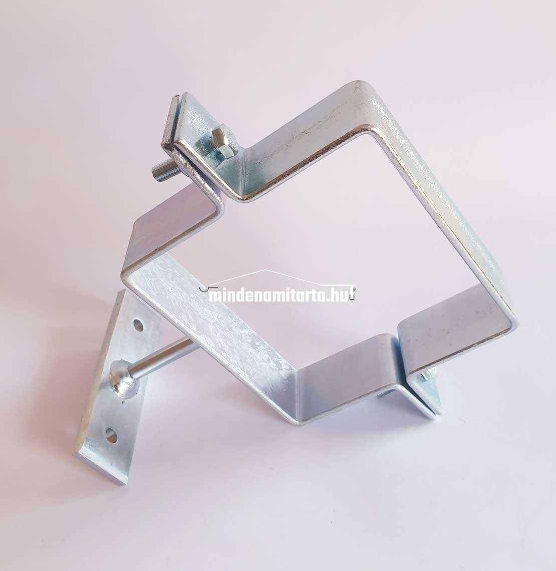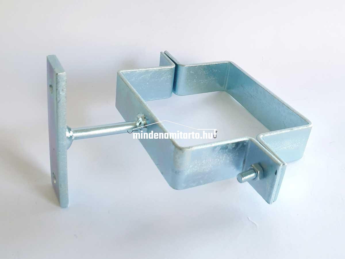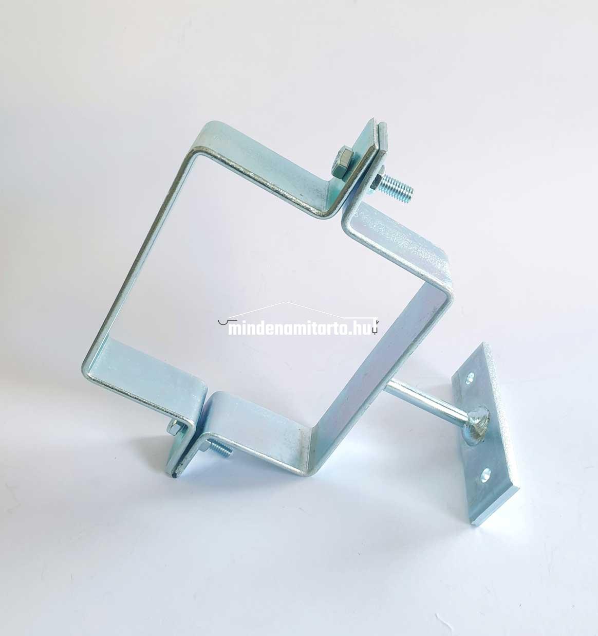 Szögletes bilincs 100-s , talpas. Mérete: 100x100-s , 30x3 lapos acélból , 50 mm hosszú talpas kivitelben, horganyzott acélból.