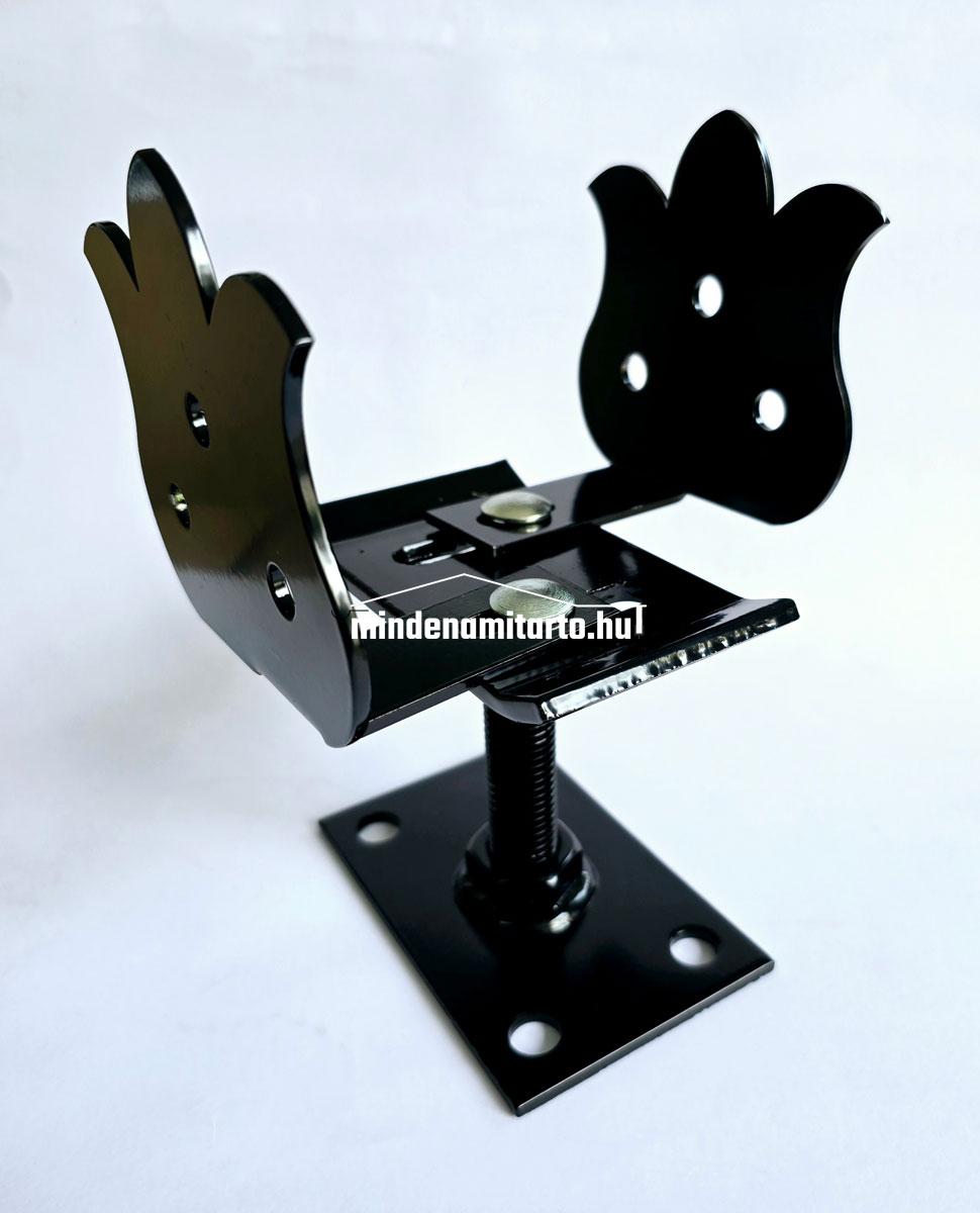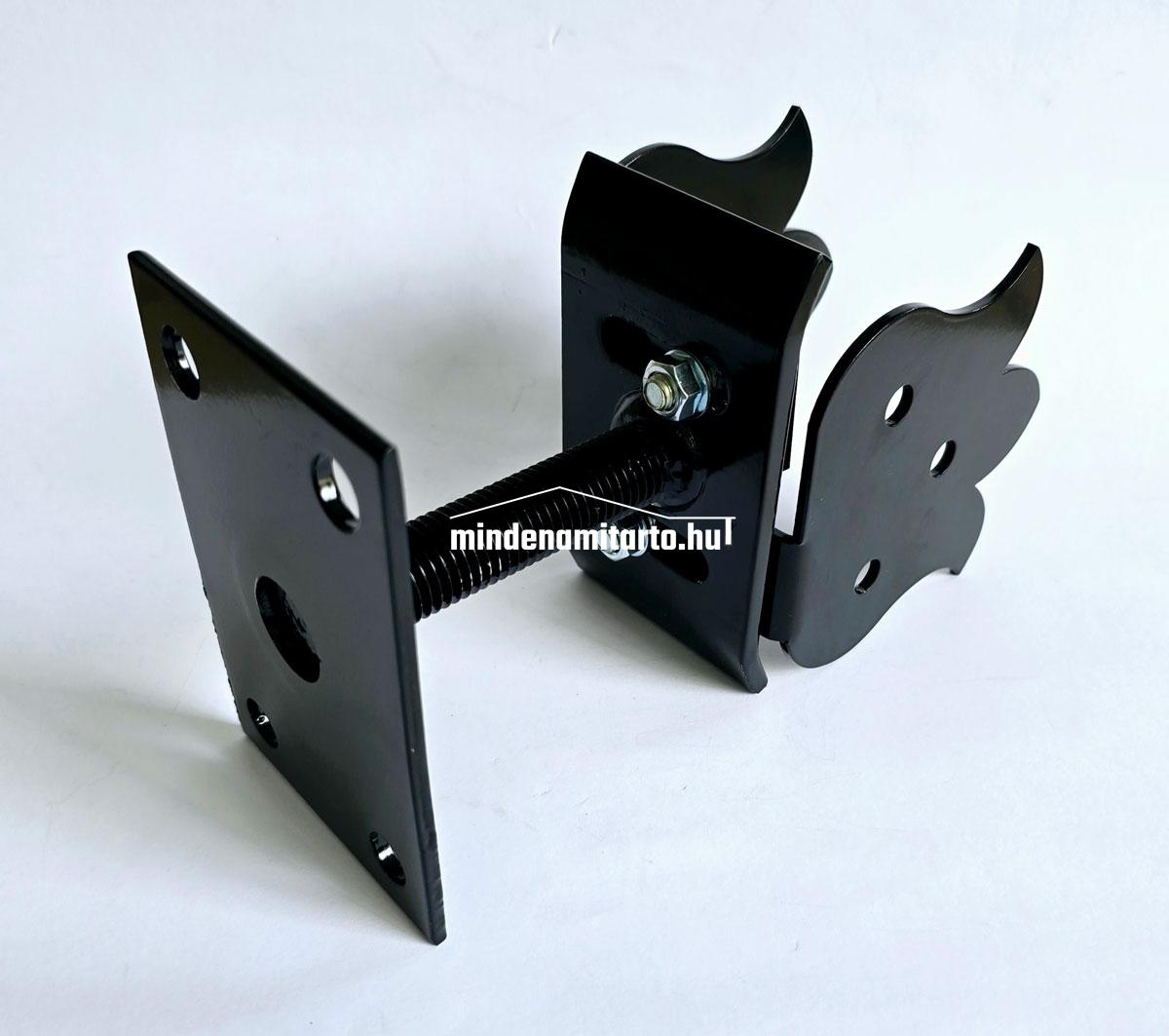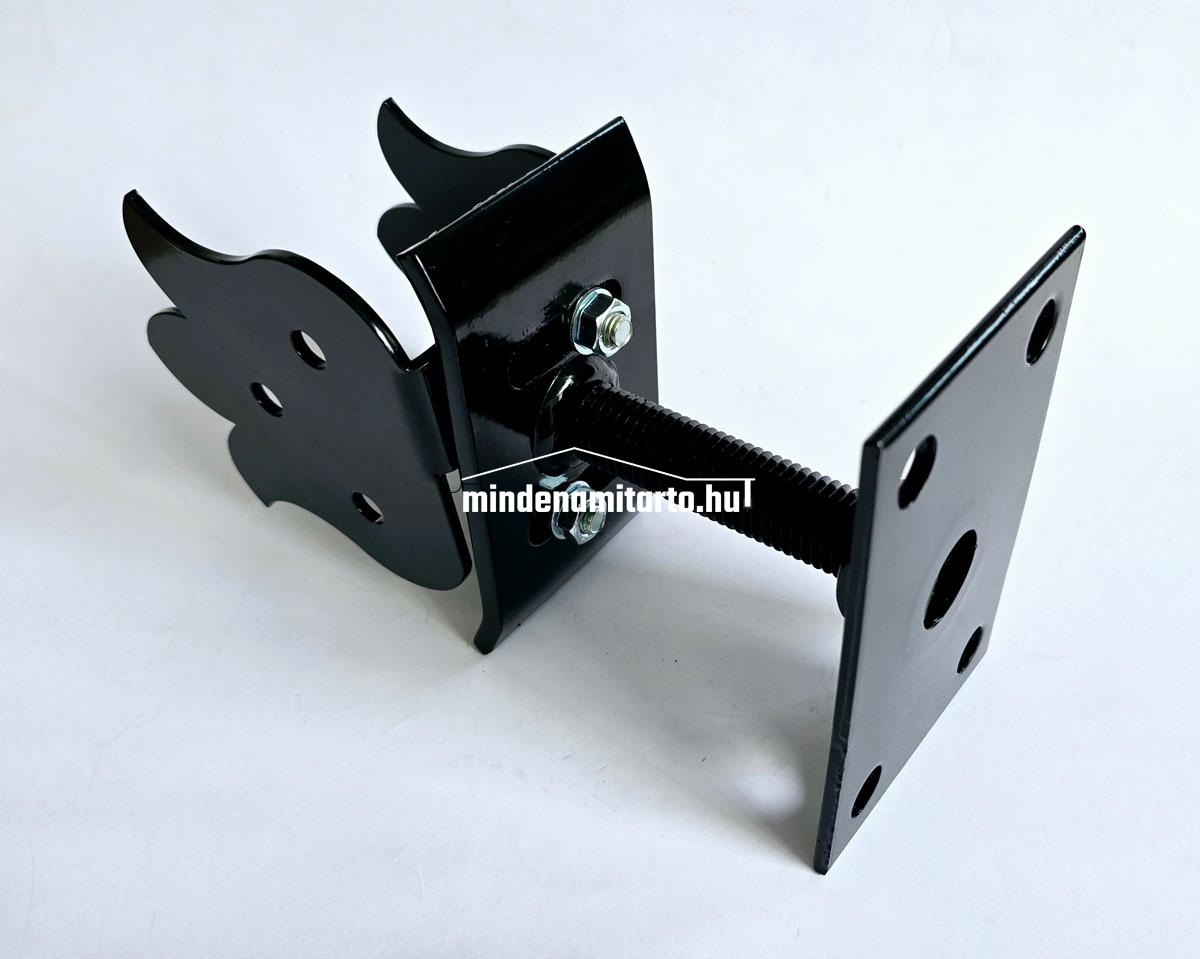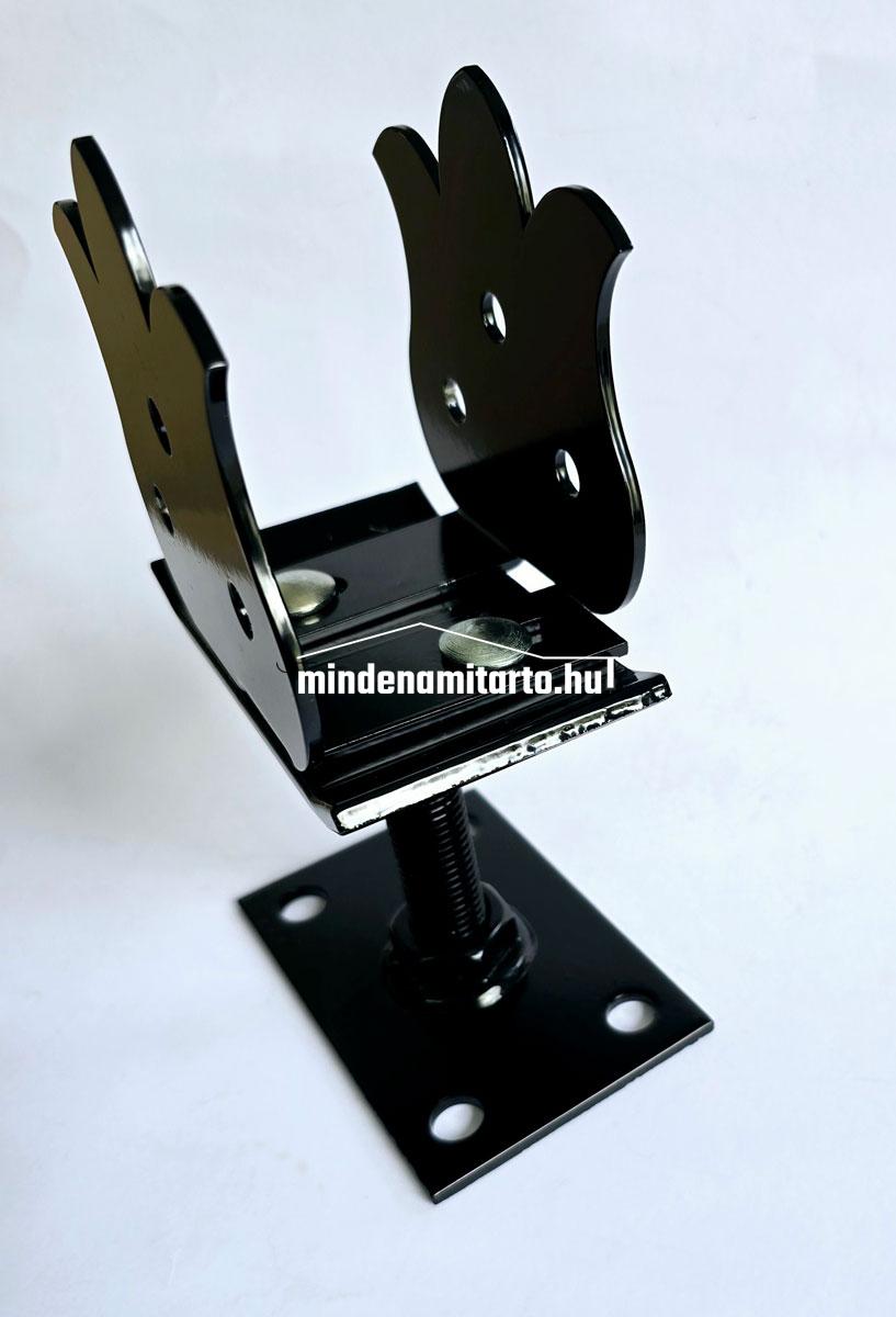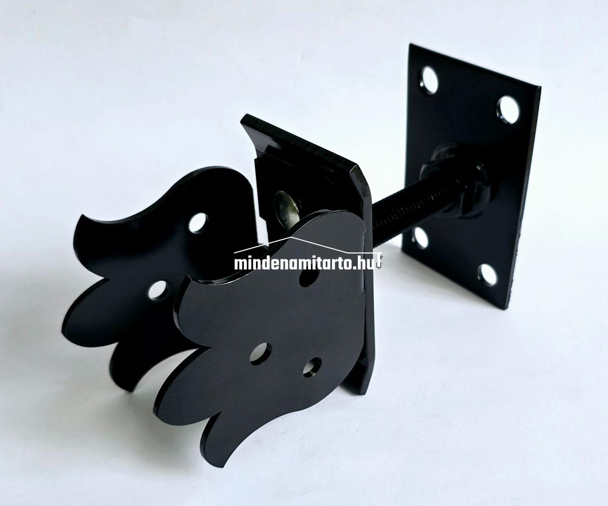Méret: 100x100x3 Horganyzott , feketére festett szinterezett, Menetes szár M: 20 mm, Oszlopméret 80-150 mm-ig. Népies , tulipános mintájú.