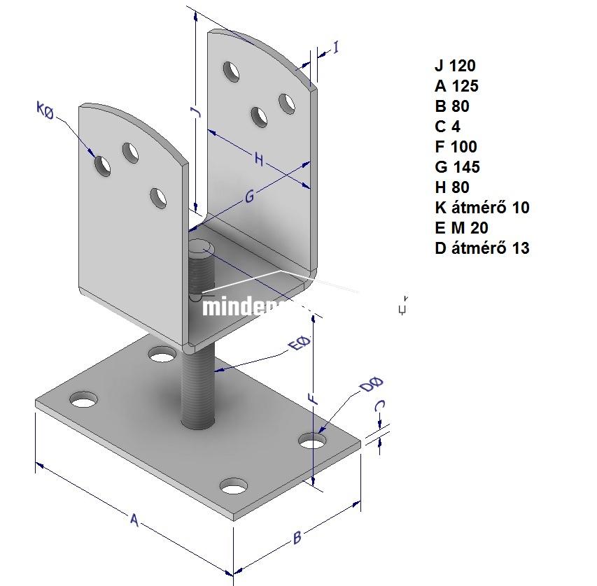 Oszloptartó, állítható menetes kivitelű , 3 mm vastag , melegen hengerelt lemezből, 80 mm széles, 150 mm gerendához. Sárga kromátozott felületkezeléssel.