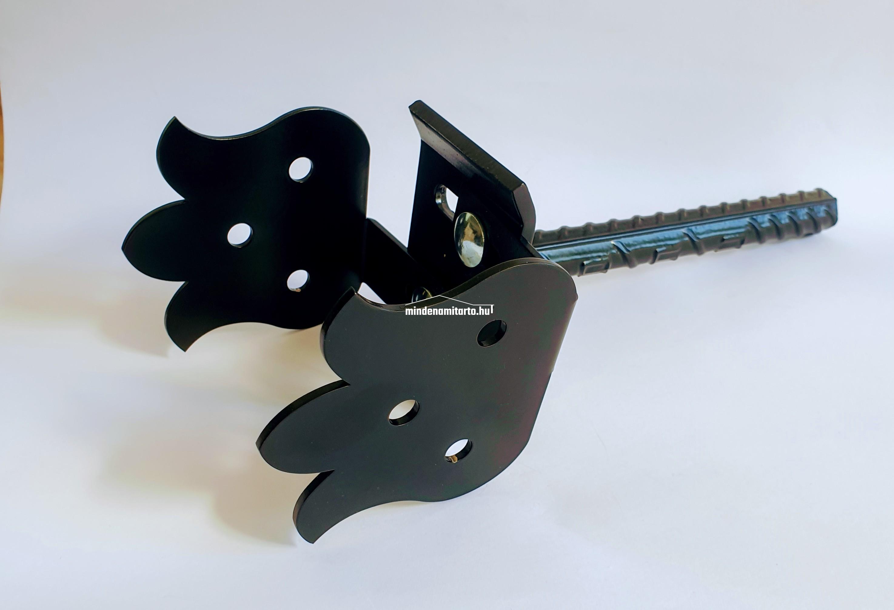 Méret: 100x100x3 Horganyzott , feketére festett, Betonvas átmérő: 20 mm, Oszlopméret 80-150 mm-ig. Népies tulipános mintájú.
