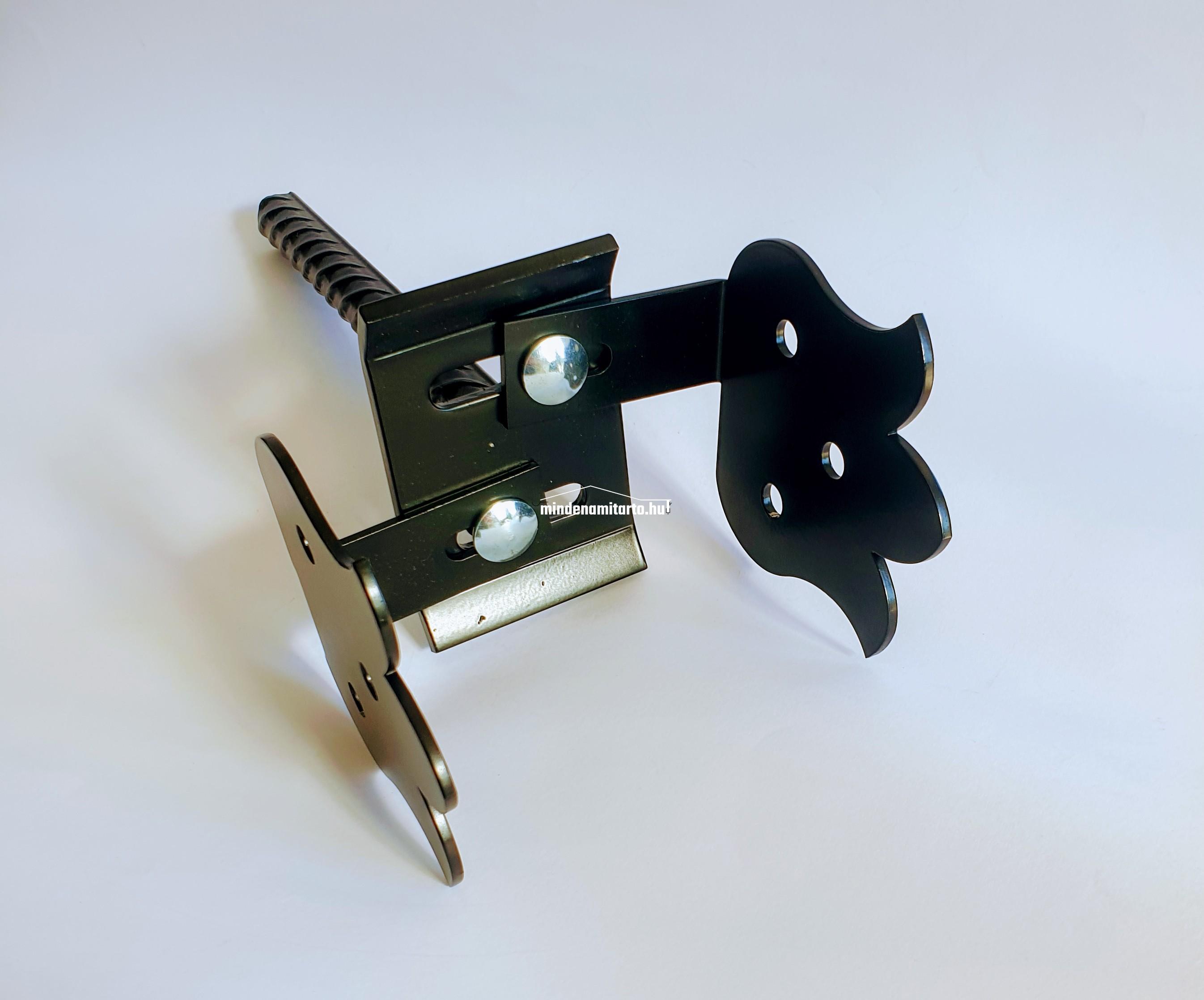Méret: 100x100x3 Horganyzott , feketére festett, Betonvas átmérő: 20 mm, Oszlopméret 80-150 mm-ig.  Népies , tulipános mintájú.